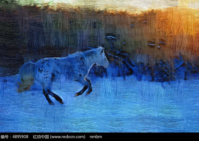 电脑油画《雪野白马》