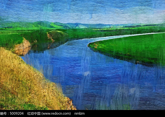 电脑油画《原野河湾》