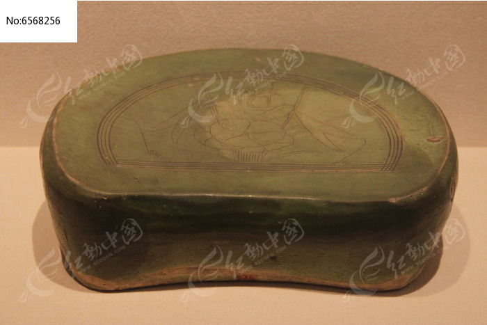 绿釉刻花枕
