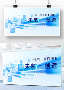 蓝色企业科技周年庆高峰论坛会议背景展板
