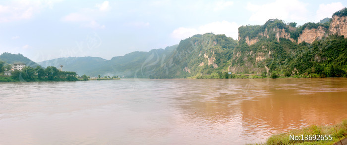 四川乐山福禄镇大渡河流域山水风光全景接图
