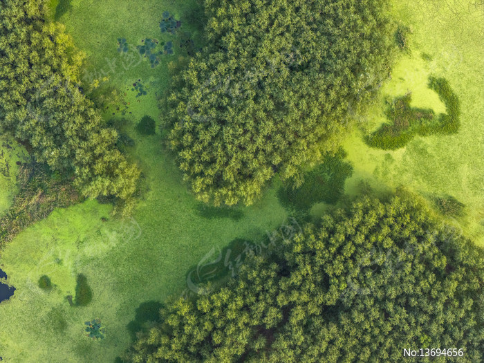 航拍绿意森林湿地