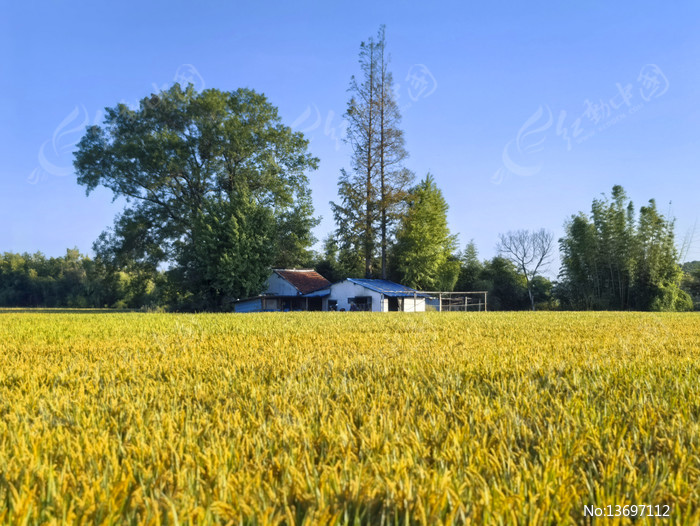 清晨稻田乡野人家