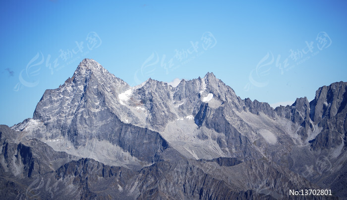 夹壁梁子视角的雪隆包(额尔什古神山)雪山