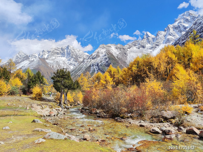 川西毕棚沟彩色森林下潺潺溪流
