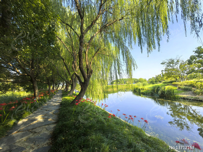 柳树依依的湿地