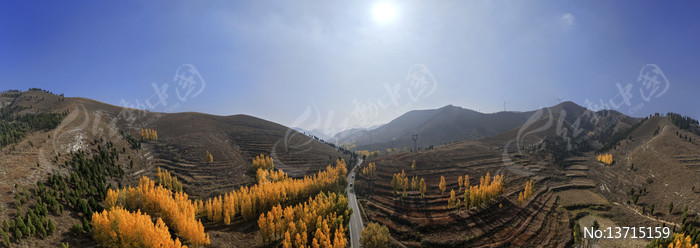 宽幅秋日山林全景风光