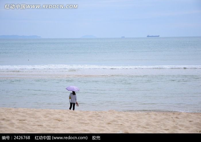 海边撑伞看海的女孩