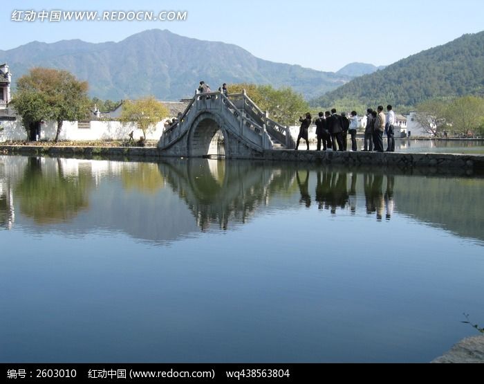清澈湖面上的拱桥