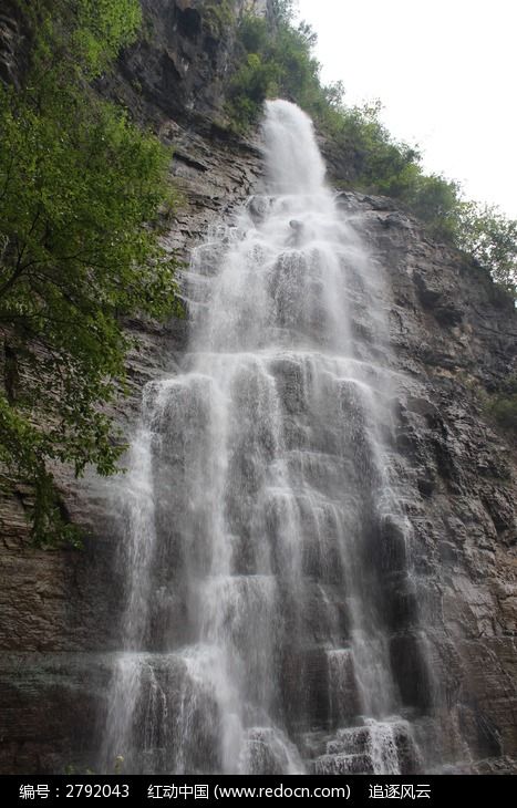 高山上奔腾的瀑布