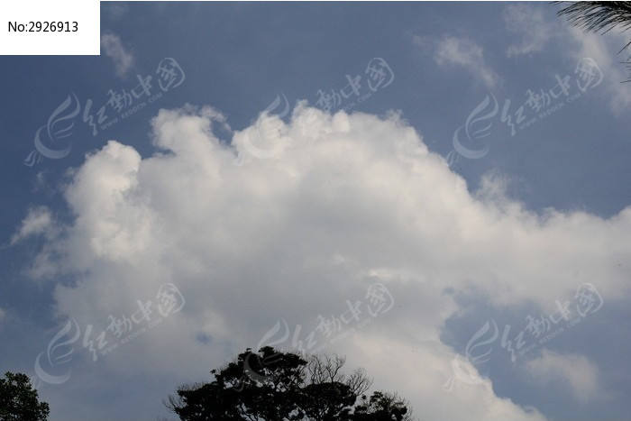 树梢顶上的洁白云朵