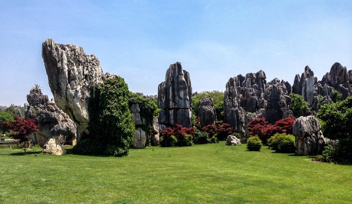 石林、草地、蓝天