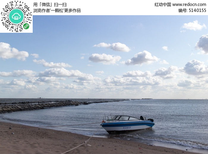 蓝天白云海中游船