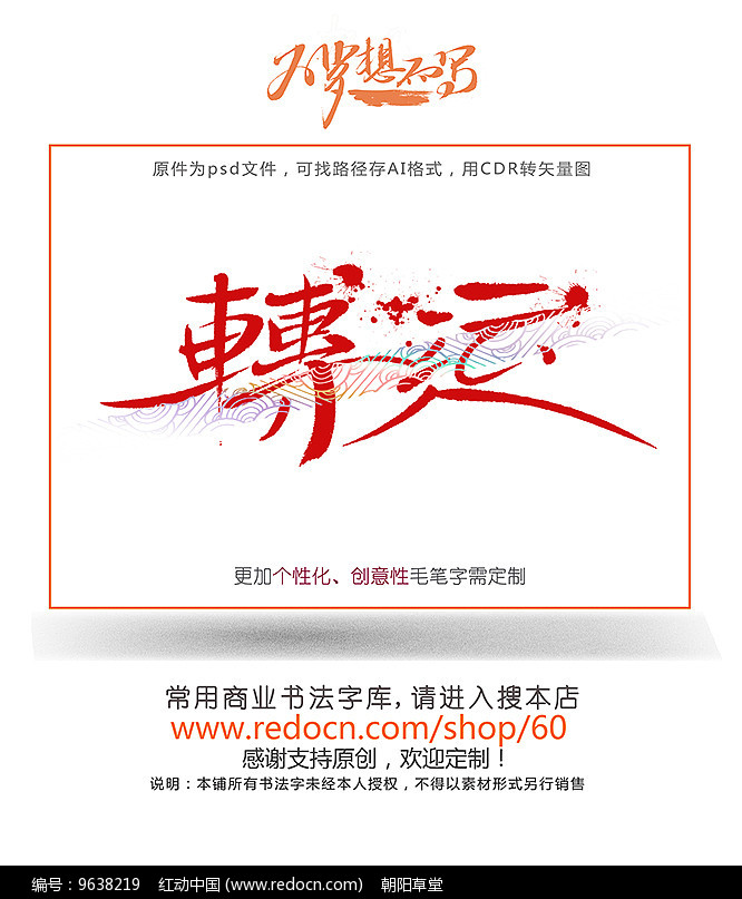 - 红动网所有作品均是用户自行上传分享并拥有版权或使用权,此作品可商用(如需商用,请选择商用授权,授权仅对作品中独创性部分进行授权,对作品中含有的国旗、国徽等政治图案及各类商标不享有权利,此类图案及商标仅作为作品元素展示而存在,素材中如有人物图像以及字库文件未特殊说明可商用的,同样仅作为作品元素展示而存在)。若您的权利被侵害,请联系 copyright@redocn.com。
